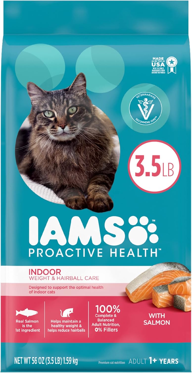 Amazon Com Iams Proactive Health Adult Indoor Weight Hairball Care Dry Cat Food With Salmon 3 5 Lb Bag Pet Supplies